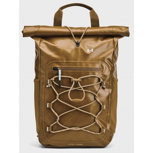Цей рюкзак готовий до подорожей. Він надміцний та водонепроникний. Водовідштовхувальна технологія UA Storm збереже ваші речі сухими. Задня панель та плечові ремені з повітропроникної сітки з м'якою підкладкою для максимального комфорту. Система ременів LEVELED™ дозволяє рівномірно відрегулювати лямки для збалансованого розподілу ваги. Складна конструкція із застібками-гачками. Вбудований рукав для ноутбука – вміщує MacBook Pro® до 13' або ноутбук аналогічного розміру. Передня кишеня на блискавці для цінних речей і дві бічні кишені для пляшок з водою. Передня застібка, що регулюється, для зручного зберігання куртки, пари взуття або м'яча. Основна тканина містить щонайменше 90% переробленого поліестеру. Інформація про товар Розмір: 25х43х10 см Технології: ua storm® Склад Склад: 95% поліестер, 4% нейлон, 1% еластан