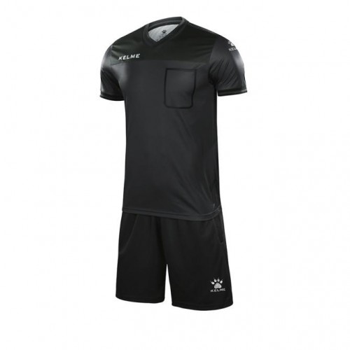 Професійний набір форм для футбольних суддів від бренду Kelme. Складається з футболки з кишенею та шортами. Виготовлений з легкої тканини, що дихає, що забезпечує комфорт навіть під час інтенсивних матчів. Контрастне поєднання кольорів підкреслює авторитет арбітра на полі.