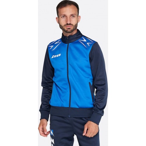 Костюм Zeus TUTA EASY – нова модель спортивного костюма від італійського бренду Zeus. Підходить для тренувань та використання у повсякденному житті та є гарним варіантом фірмових спортивних костюмів для спортивних команд та клубів. Виконаний із 100% м'якого поліестеру polisoft. Така тканина є високоякісною, м'якою, дихаючою та гарантує максимальний комфорт при русі. Кофта спортивного костюма застібається на зручну застібку-блискавку. Комір-стійка захищає від вітру. манжети на рукавах та внизу кофти, а також унизу штанин забезпечують комфорт, підтримують температуру та захищають від вітру. Добре підходить для футбольних тренувань, занять у спортзалі, пробіжок по парку та інших спортивних вправ