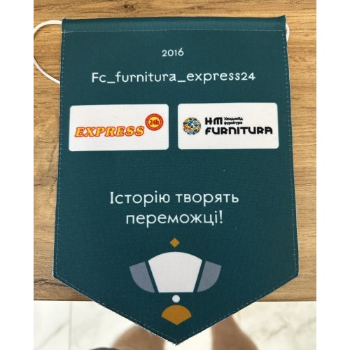 Футбольний вимпел виготовлений з високоякісного сукна, має високу зносостійкість і мінімальну сприйнятливість до впливу сонячних променів.